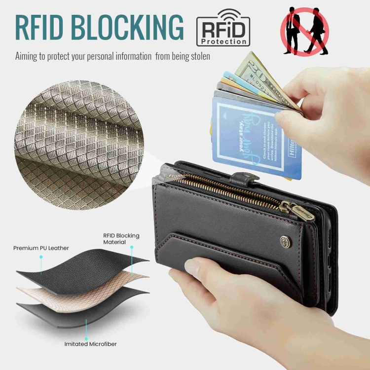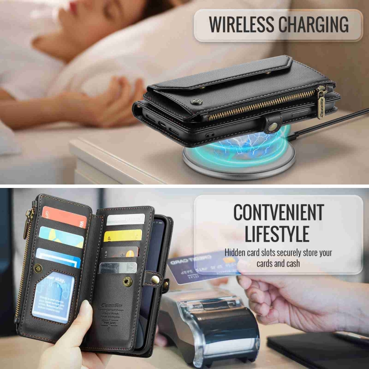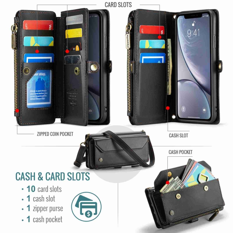 Estuche para teléfono Caseme C36 para iPhone Xr con ranuras para tarjetas y cremallera Cartera de cuero antirrobo Rfid (Negro)
