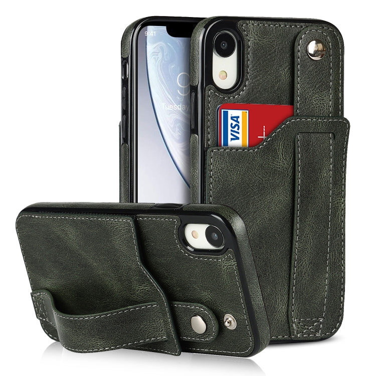 Funda para iPhone Xr Crazy Horse Texture Cuero TPU + PU a Prueba de Golpes con Ranura para Tarjeta y Correa para la Muñeca (Verde Esmeralda)