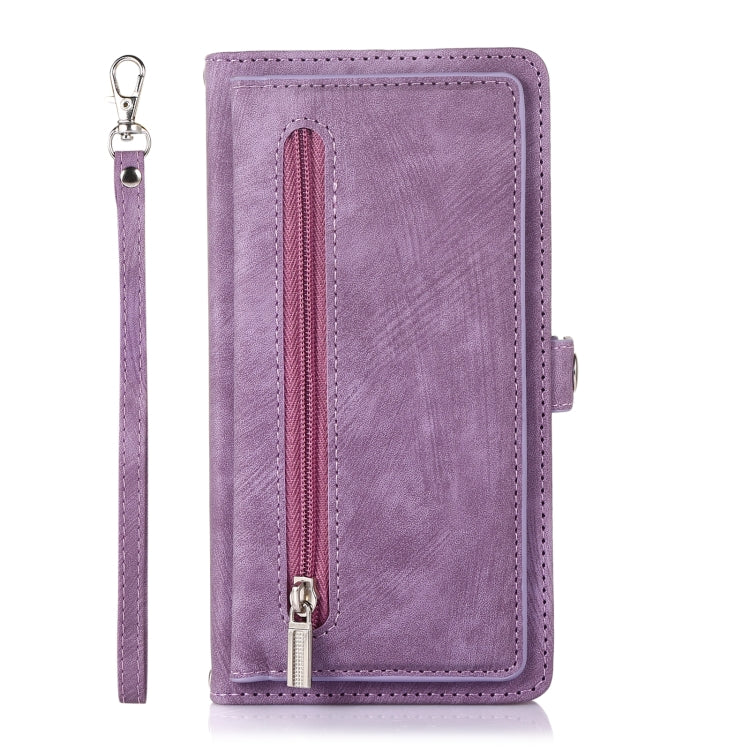 Funda para iPhone Xr Cremallera Ranura para Tarjeta Hebilla Monedero Cuero (Púrpura)