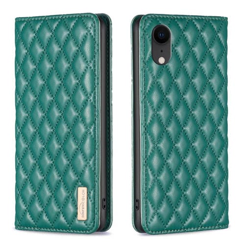 For iPhone XR Diamond Lattice Magnetic Leather Flip Phone Case (Green)