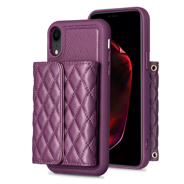 Estuche de Teléfono Cuero Rómbico con Billetera Horizontal para iPhone Xr (Púrpura Oscuro)