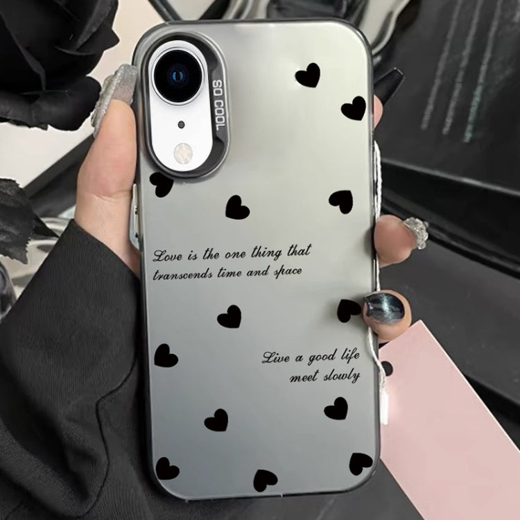 Estuche híbrido para iPhone Xr TPU con pintura plateada para PC (Love Hearts Black)
