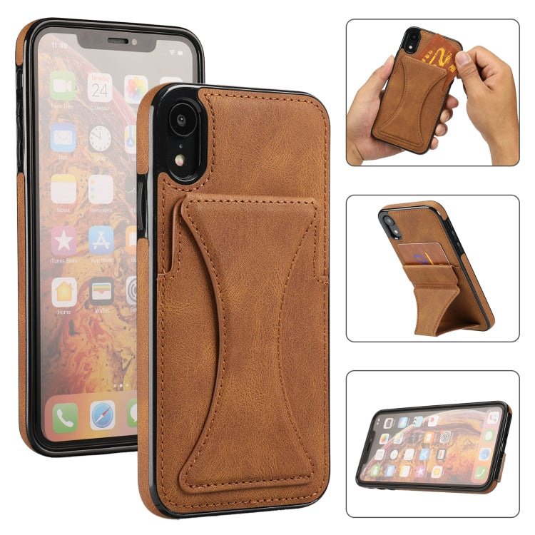 Estuche Protector para iPhone Xr Ultrafino Prueba de Golpes Soporte Función Magnética (Marrón)