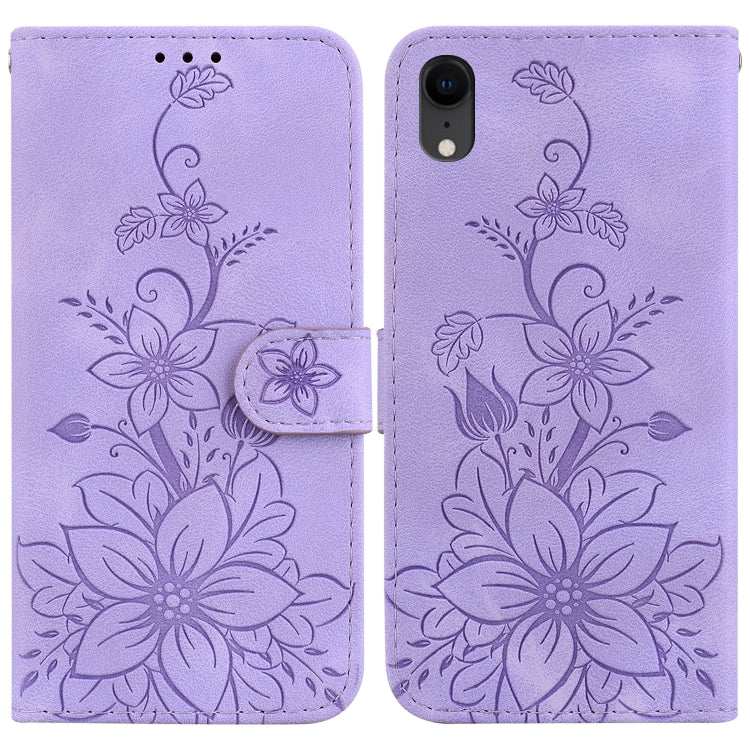 Funda para iPhone Xr Cuero con Relieve Lily (Púrpura)