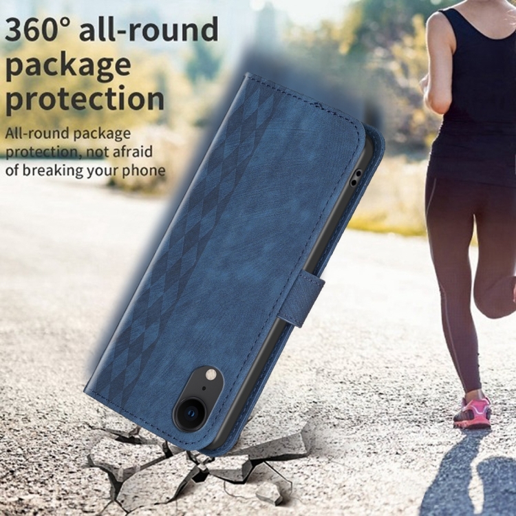 Funda de teléfono iPhone Xr Cuero en relieve a cuadros (Azul)