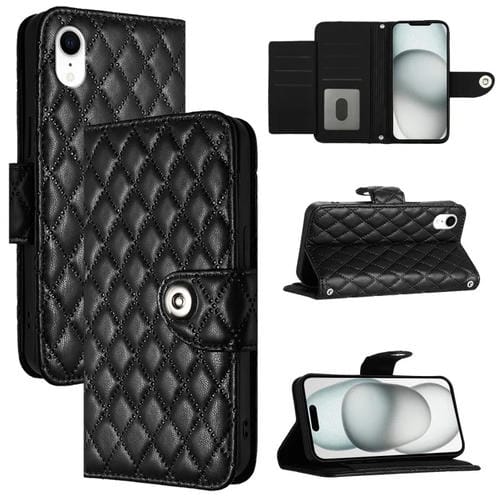Funda para Teléfono iPhone Xr con Tapa de Cuero Textura Rómbica y Cordón (Negro)