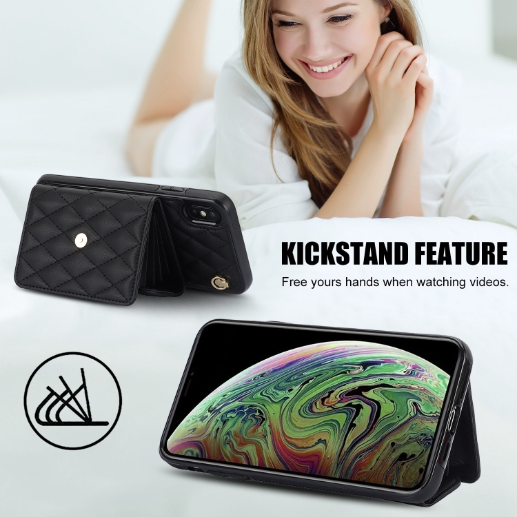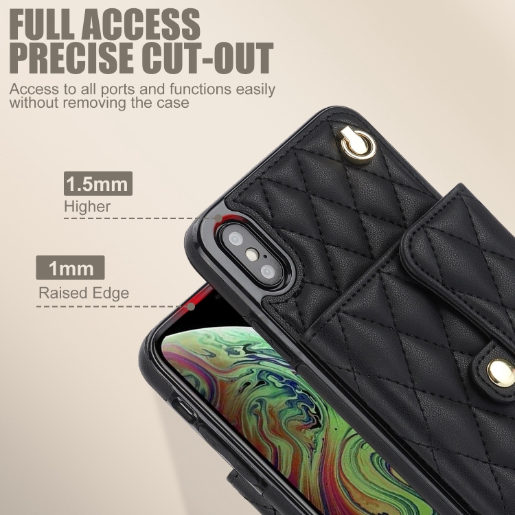 For iPhone XR Crossbody Rhombus Horizontal Wallet Leather Phone Case(Black)