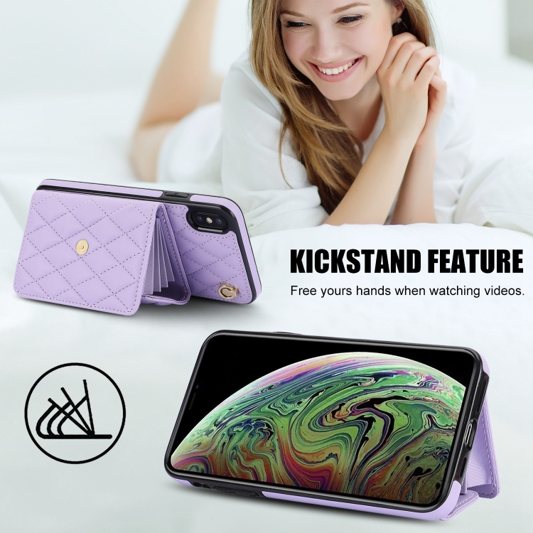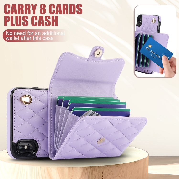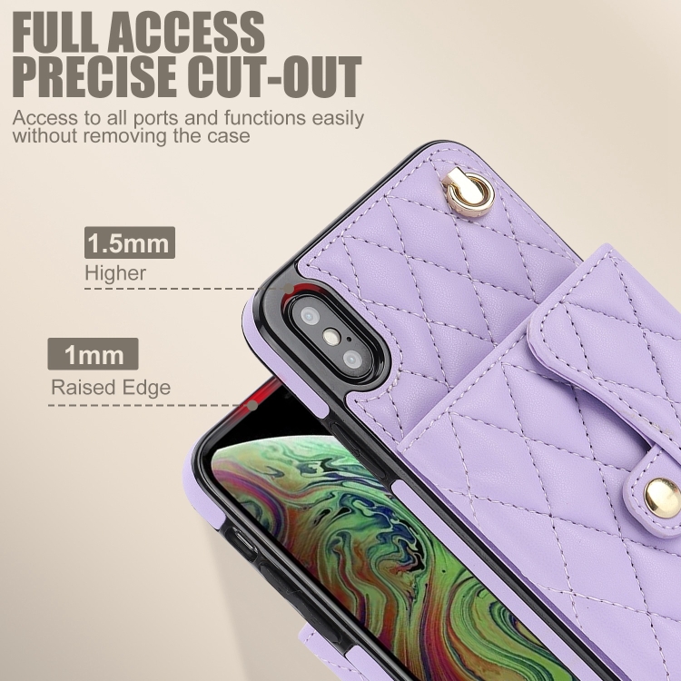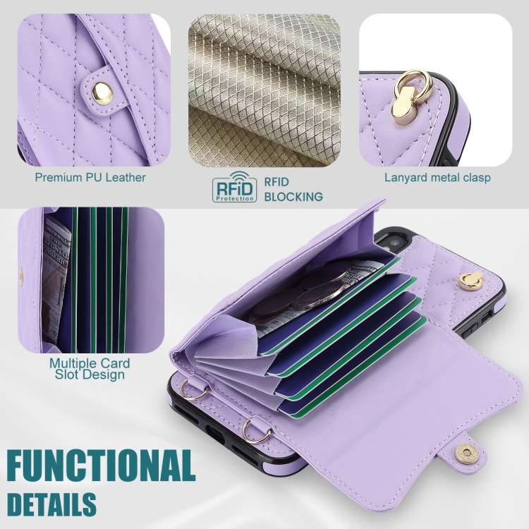 For iPhone XR Crossbody Rhombus Horizontal Wallet Leather Phone Case(Purple)