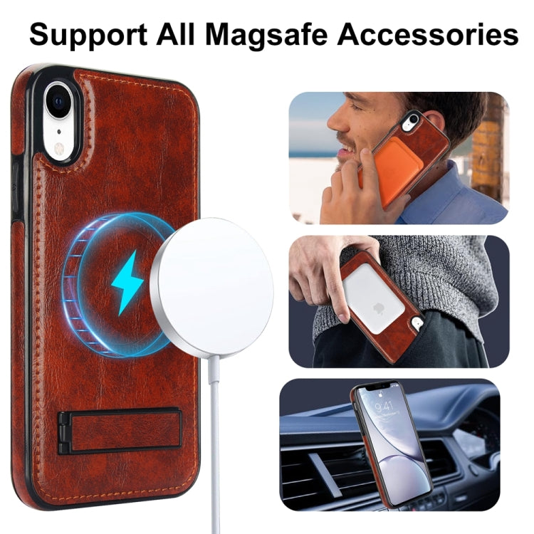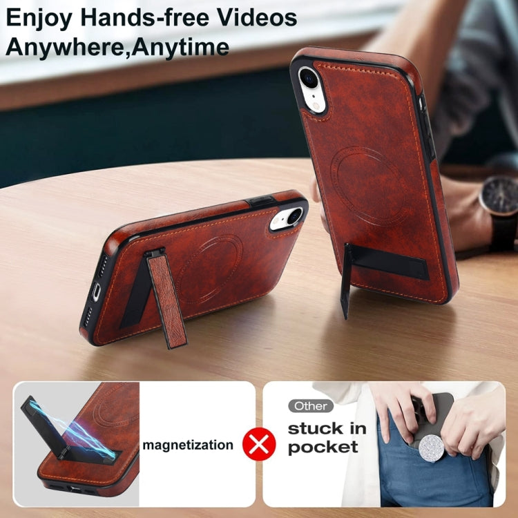 Funda para Teléfono iPhone Xr Magsafe Soporte Invisible Cuero Retro (Marrón)