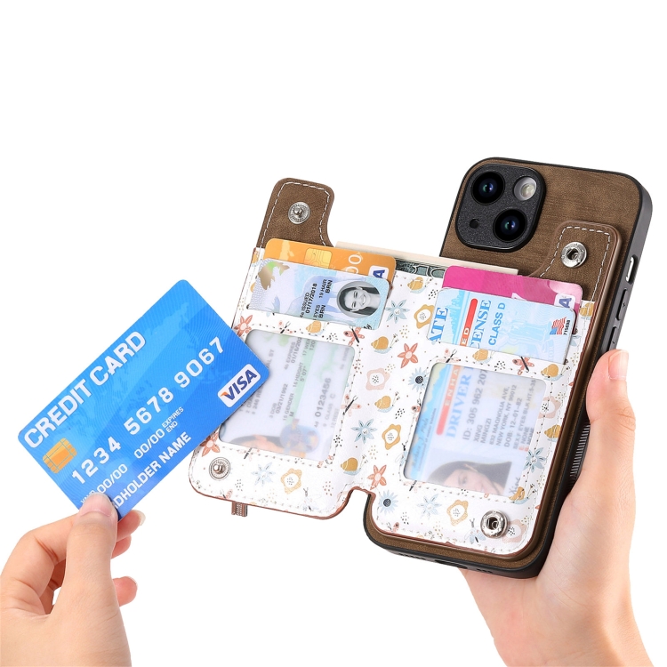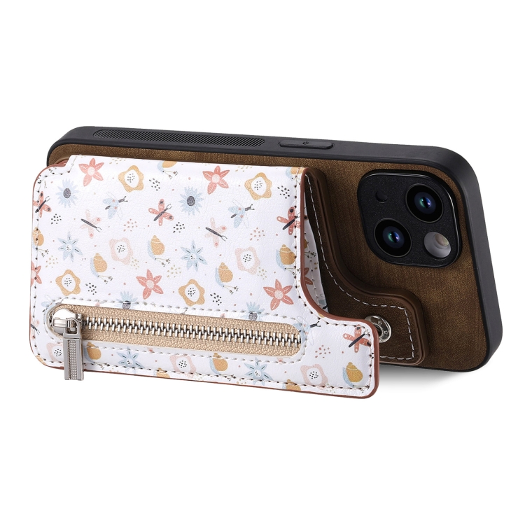 Funda Trasera para iPhone Xr con Billetera y Cremallera Pintada Retro (Marrón)