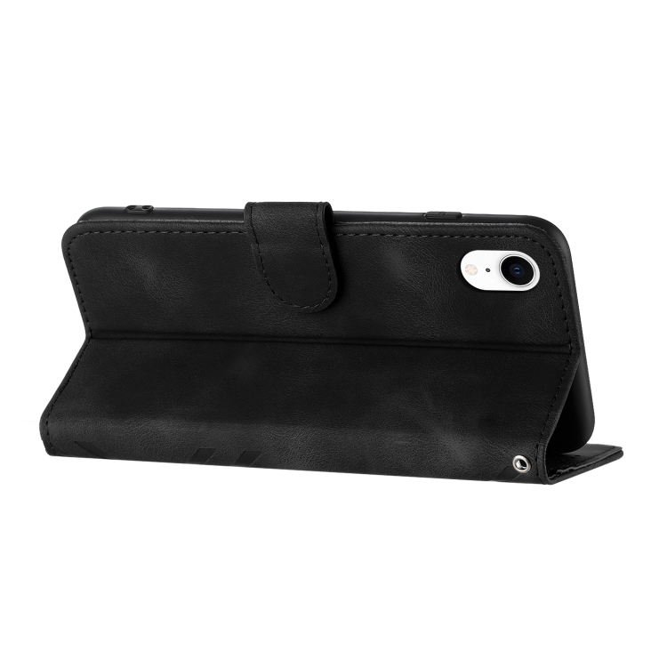 Funda para iPhone Xr Line Pattern Skin Feel Leather Phone Case (Negro)