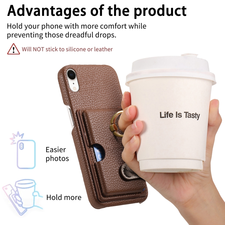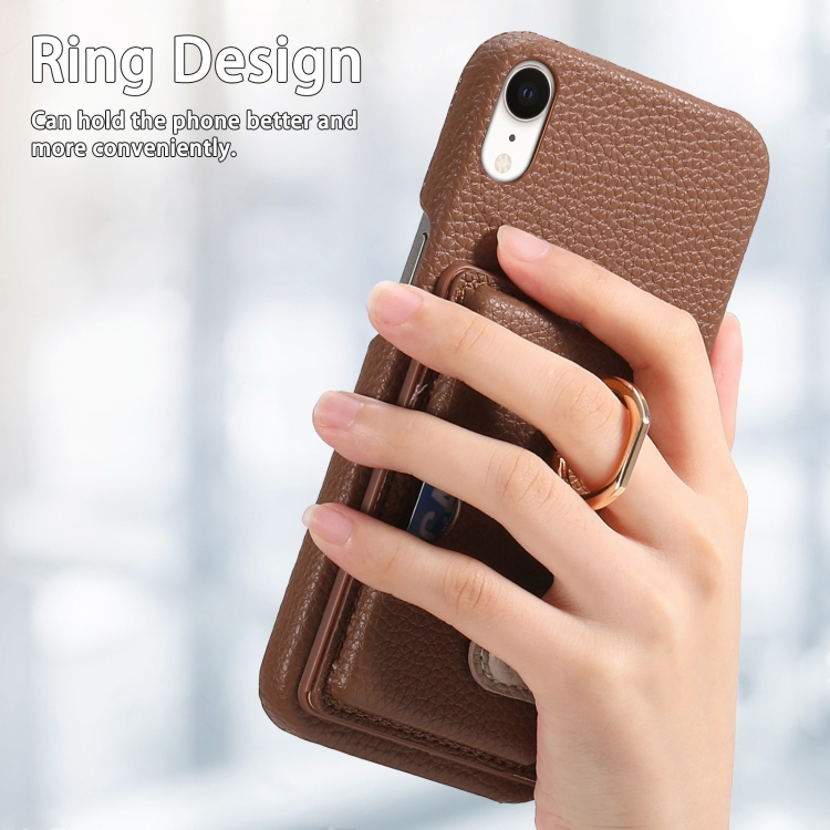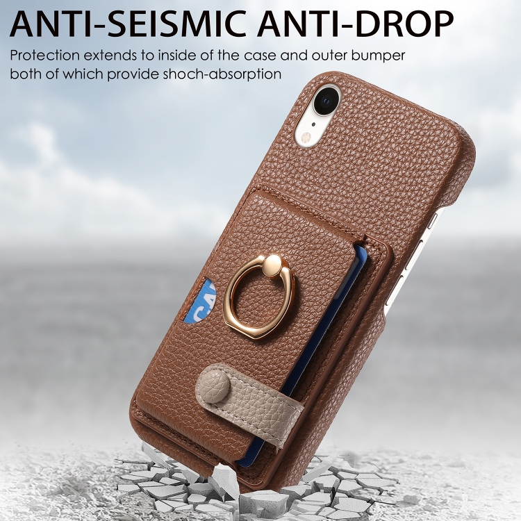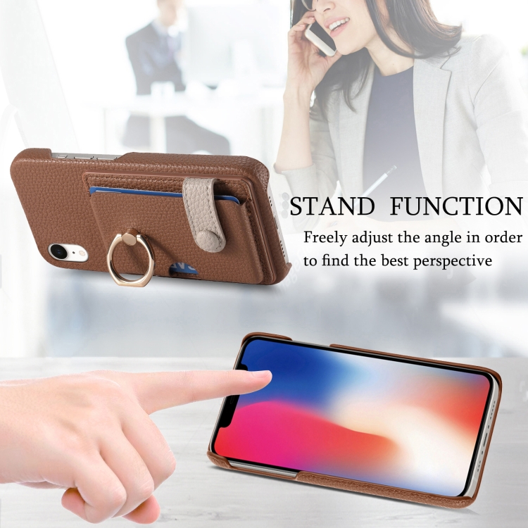 Funda para Teléfono iPhone Xr Litchi Leather Oil Edge Ring Card Back (Marrón)