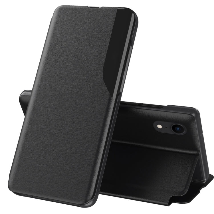 Funda de Cuero para iPhone Xr con Pantalla Lateral Tapa Horizontal Magnética Soporte a Prueba de Golpes (Negro)