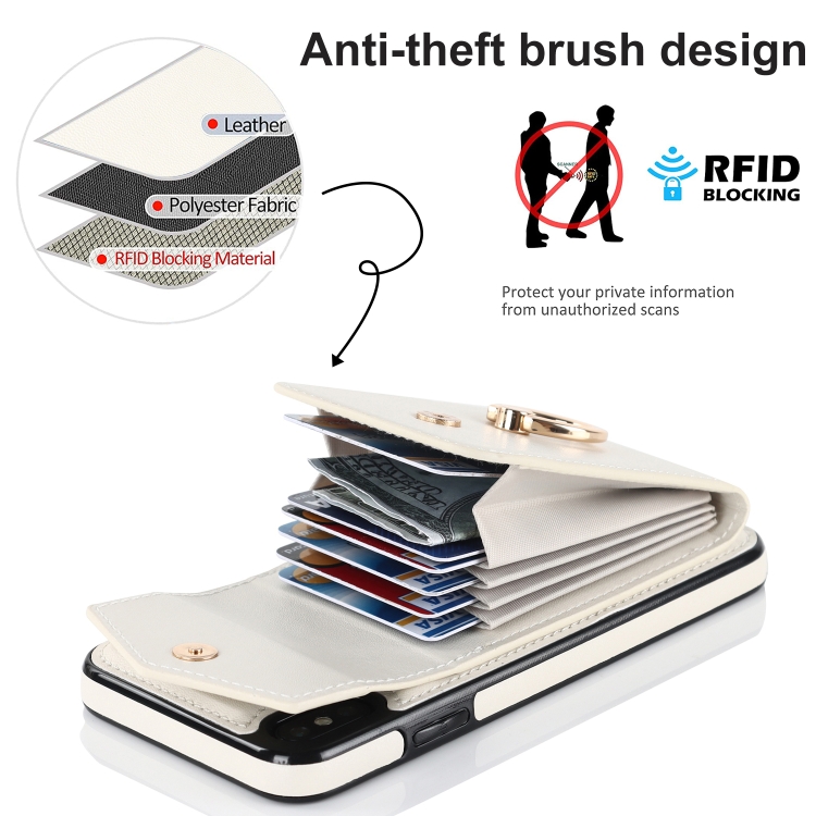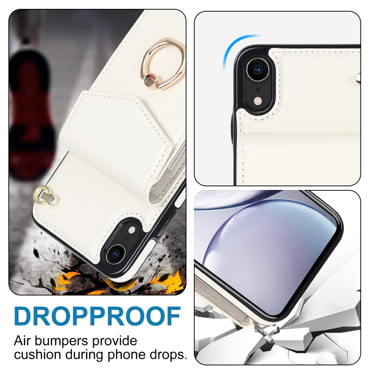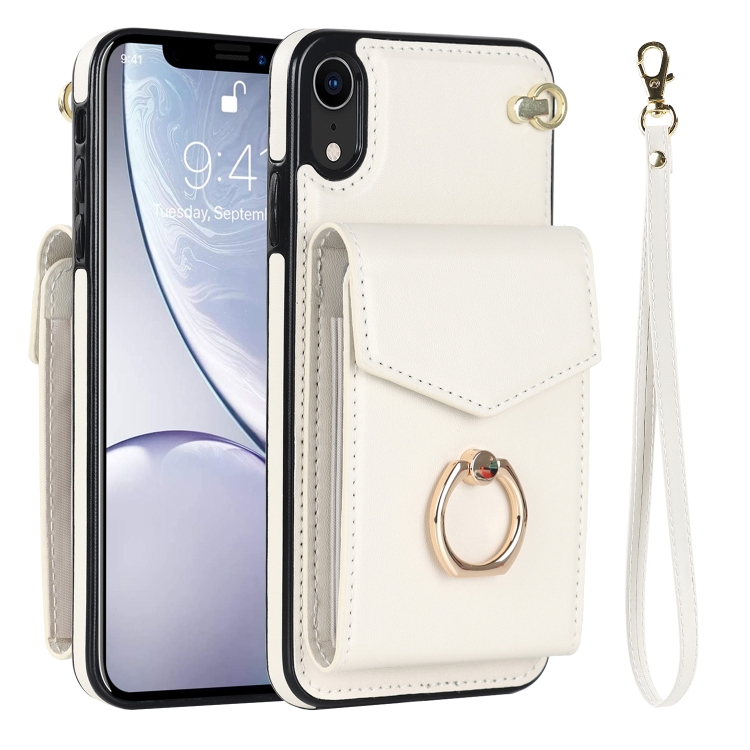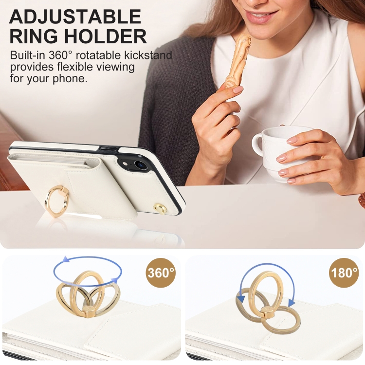 Funda para iPhone Xr Ring Holder con Ranura RFID y Soporte Anillo (Beige)