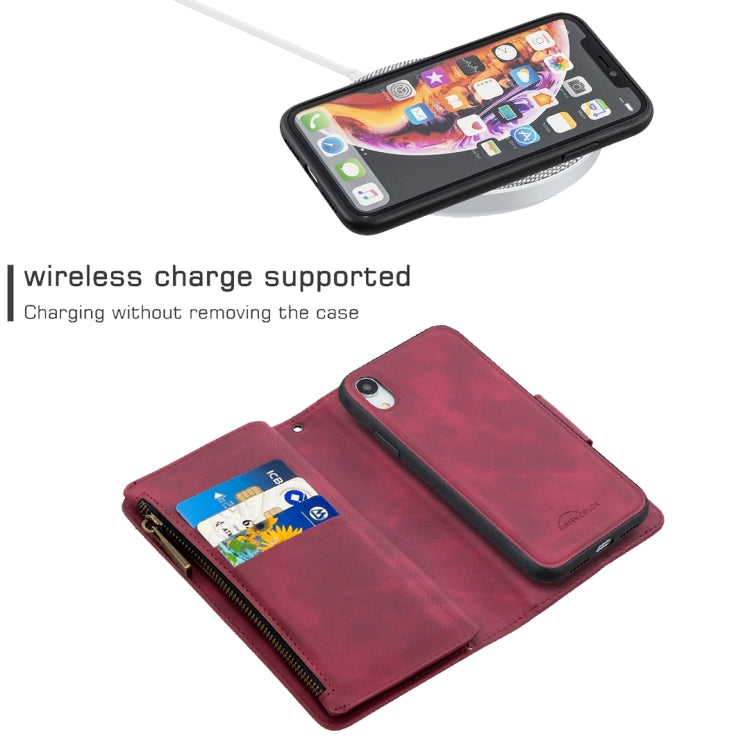 Funda para iPhone Xr Cuero de PU Desmontable Cremallera Magnética con Tapa Horizontal Ranuras Tarjetas Soporte Billetera Marco Fotos Cordón (Rojo)