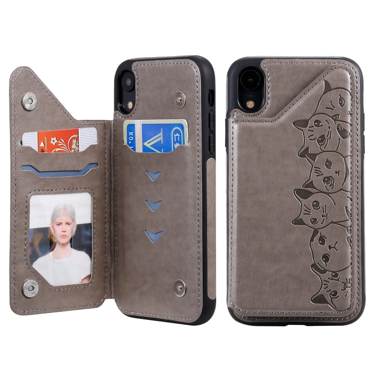 Estuche Protector para iPhone Xr Six Cats con Patrón de Relieve Soporte Ranuras para Tarjetas y Marco de Fotos (Gris)
