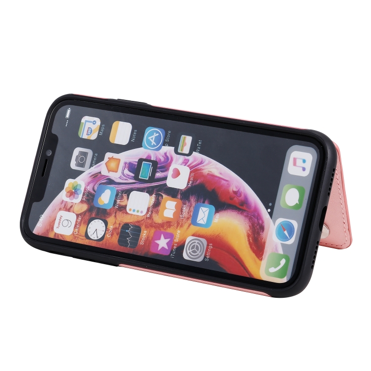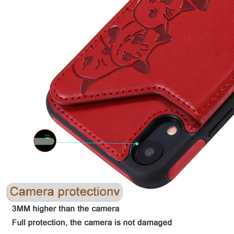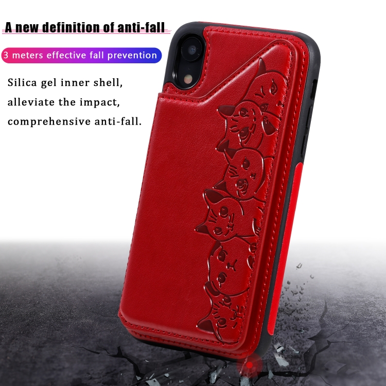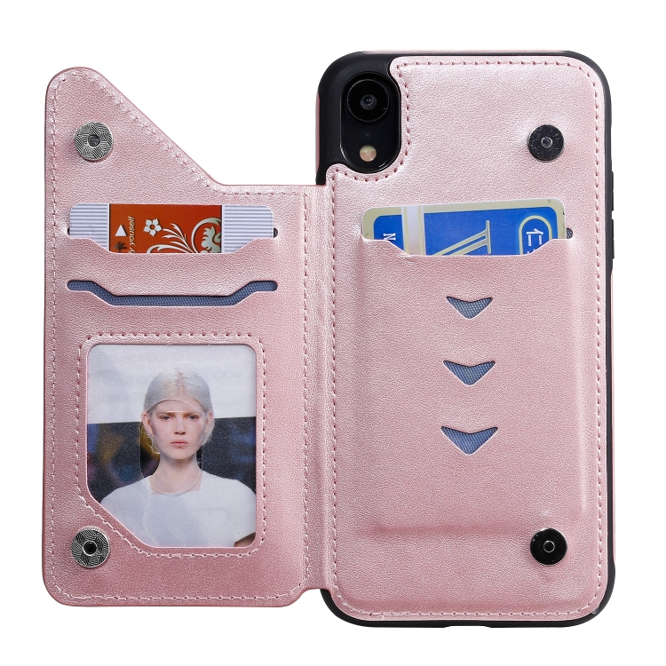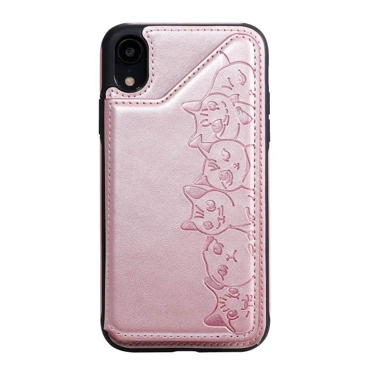 Estuche Protector Six Cats para iPhone Xr con Patrón de Relieve Soporte Ranuras Tarjetas y Marco de Fotos (Oro Rosa)