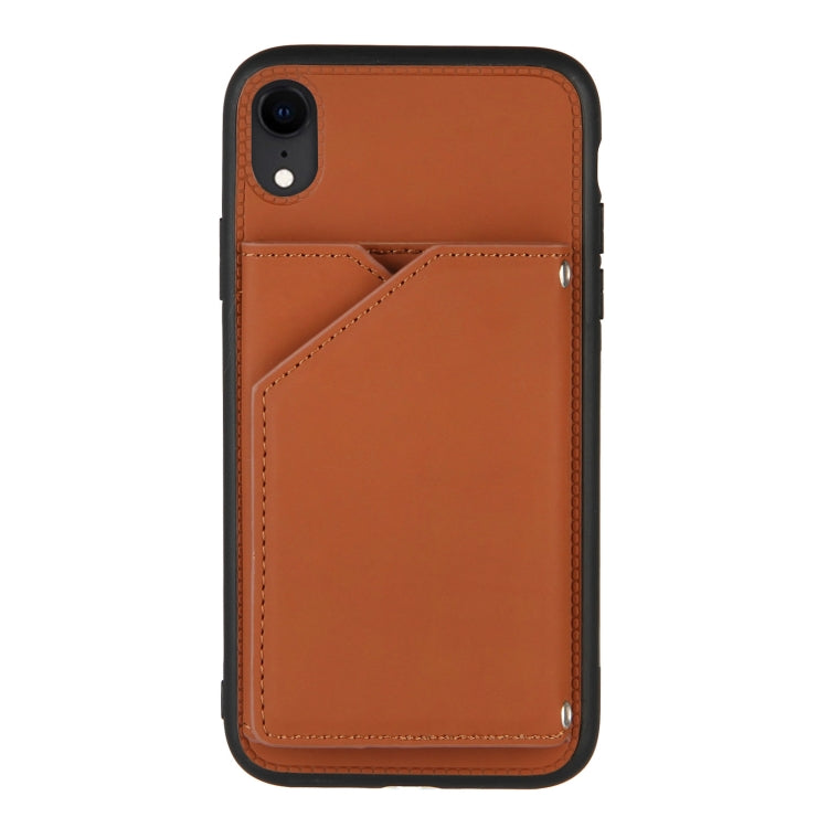 Funda para iPhone Xr Skin Feel Pu TPU PC Contraportada Estuche a Prueba de Golpes Ranuras Tarjetas Soporte Marco Fotos (Marrón)