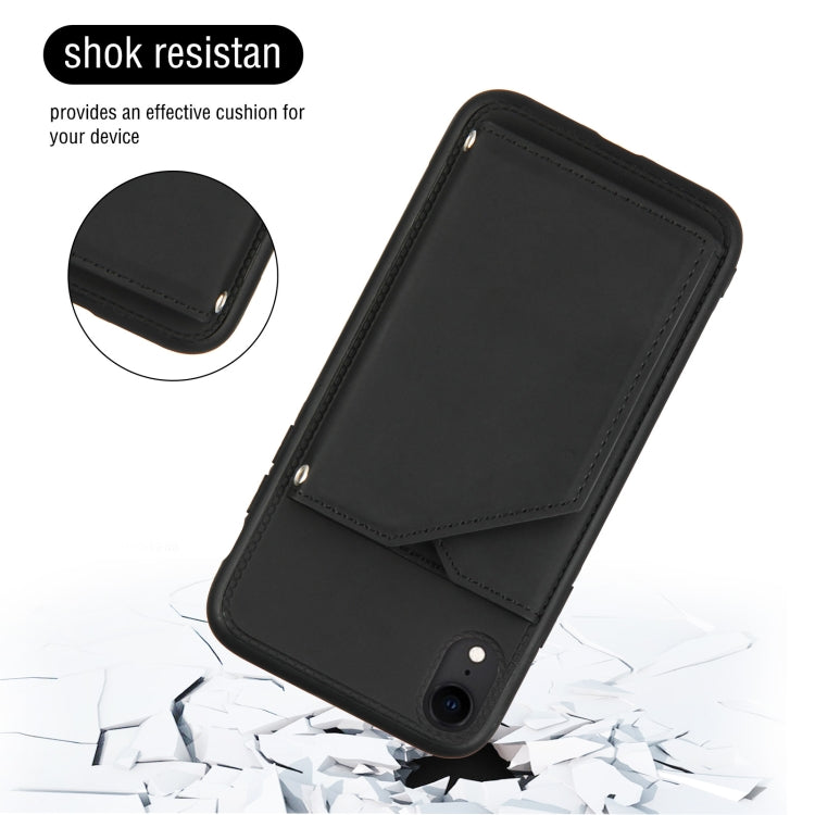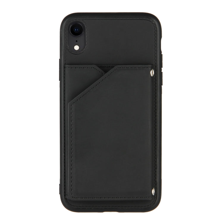 Funda para iPhone Xr Skin Feel PU + TPU + PC Contraportada Estuche a Prueba de Golpes con Ranuras y Soporte (Negro)