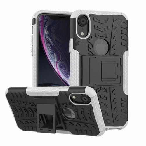 Estuche para iPhone Xr Tire Texture TPU + PC a Prueba de Golpes con Soporte (Blanco)