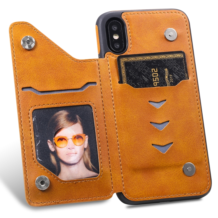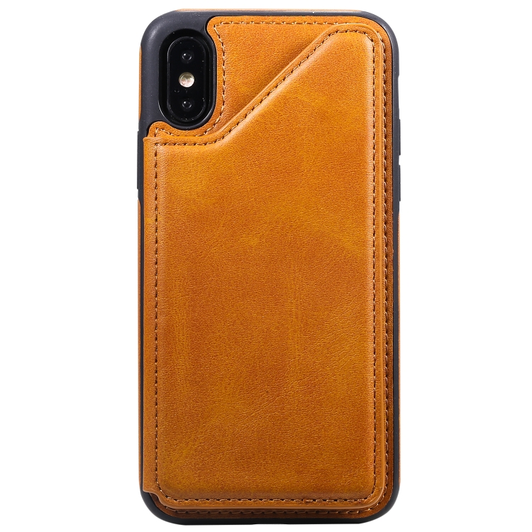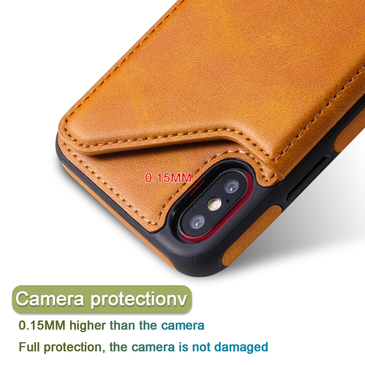 Funda Protectora para iPhone Xs con Textura de Pantorrilla a Prueba de Golpes Soporte y Ranuras para Tarjetas (Marrón)