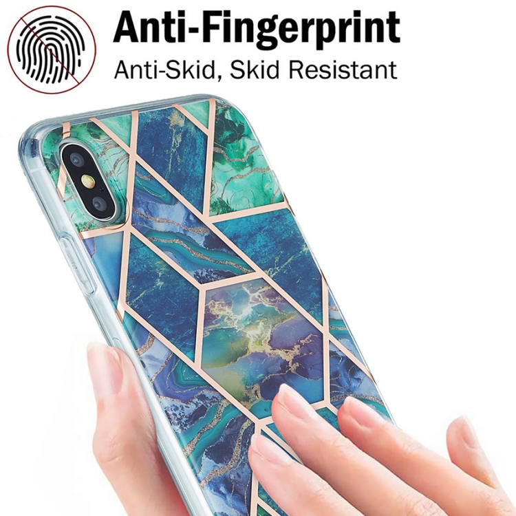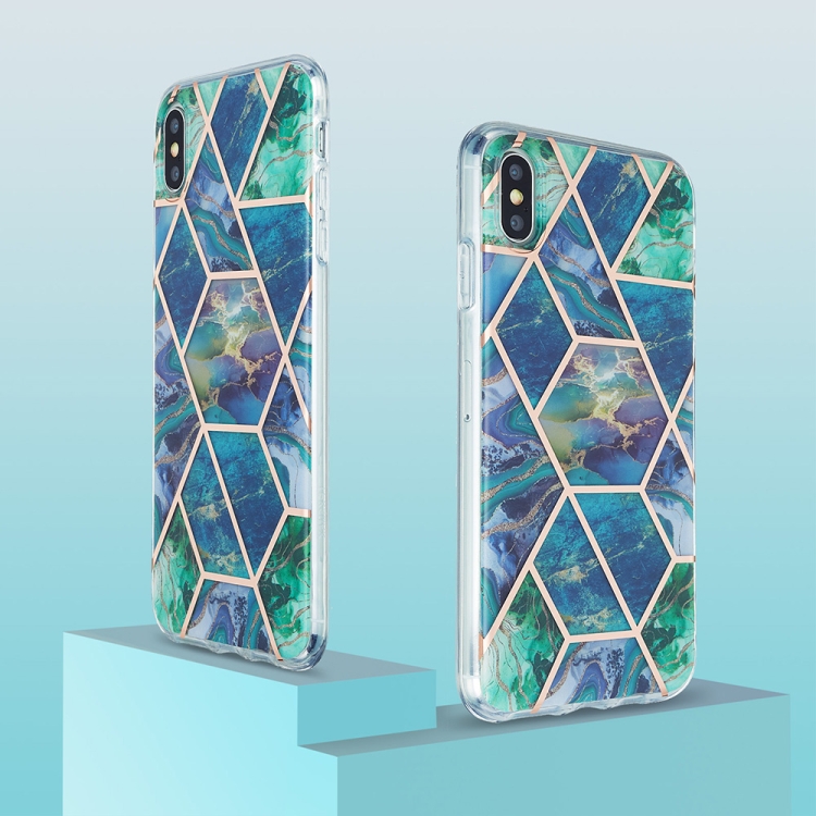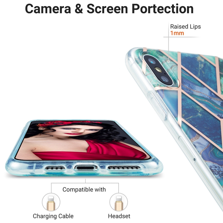 Funda Protectora TPU para iPhone Xs Max 3D Galvanoplastia Patrón de Mármol (Verde Oscuro)