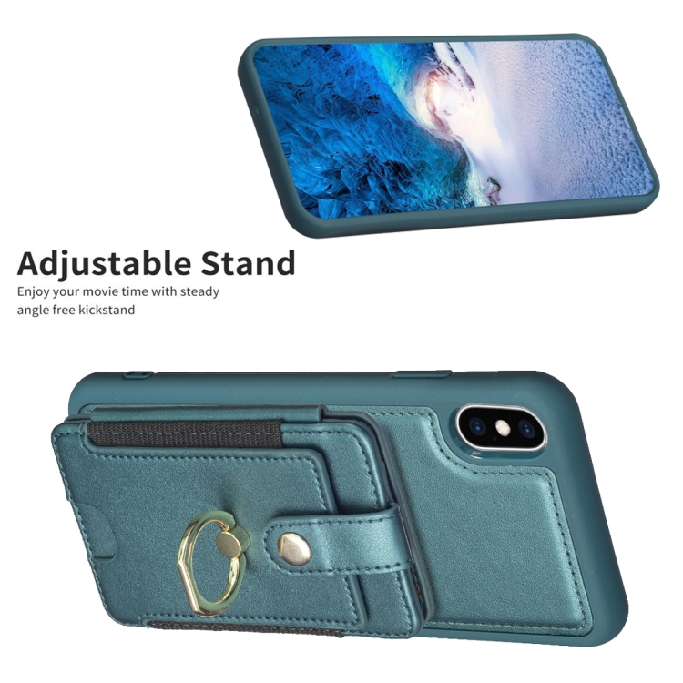 Anillo de Metal Tarjeta Bolsa Titular Caja para iPhone Xs Max Bf27 (Verde)