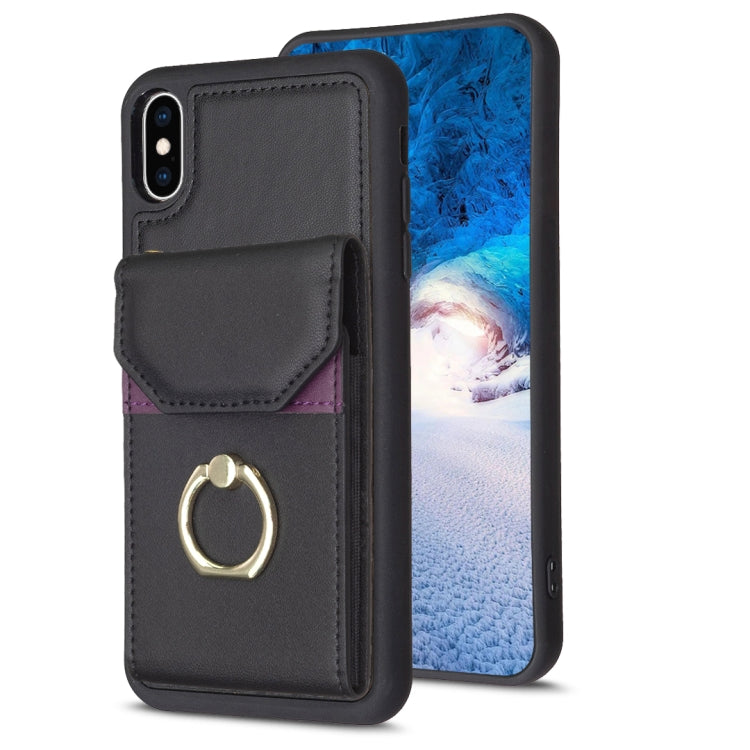 Funda para teléfono Bf29 iPhone Xs Max con soporte para anillo y bolsa para tarjeta (Negro)