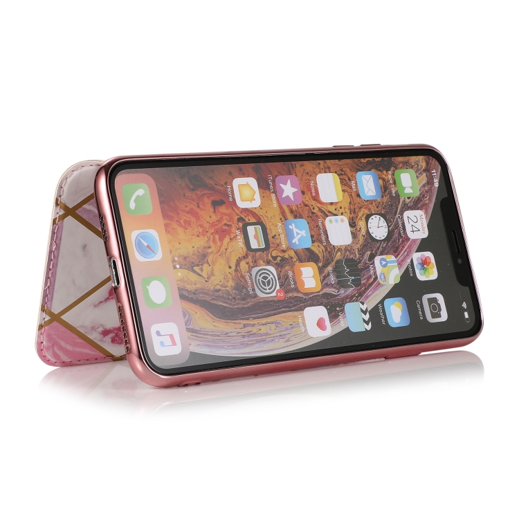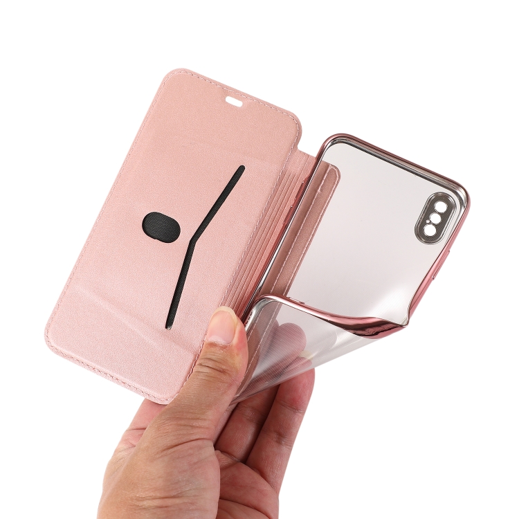 Funda para iPhone Xs Max Bronceado PU + TPU de Cuero con Tapa Horizontal Soporte y Ranura para Tarjeta (Rosa Blanco)