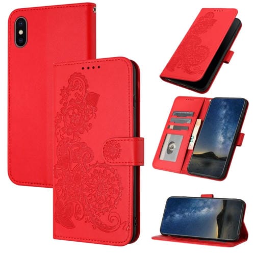 Funda para Teléfono iPhone Xs Max Datura Flower Cuero con Tapa en Relieve (Rojo)