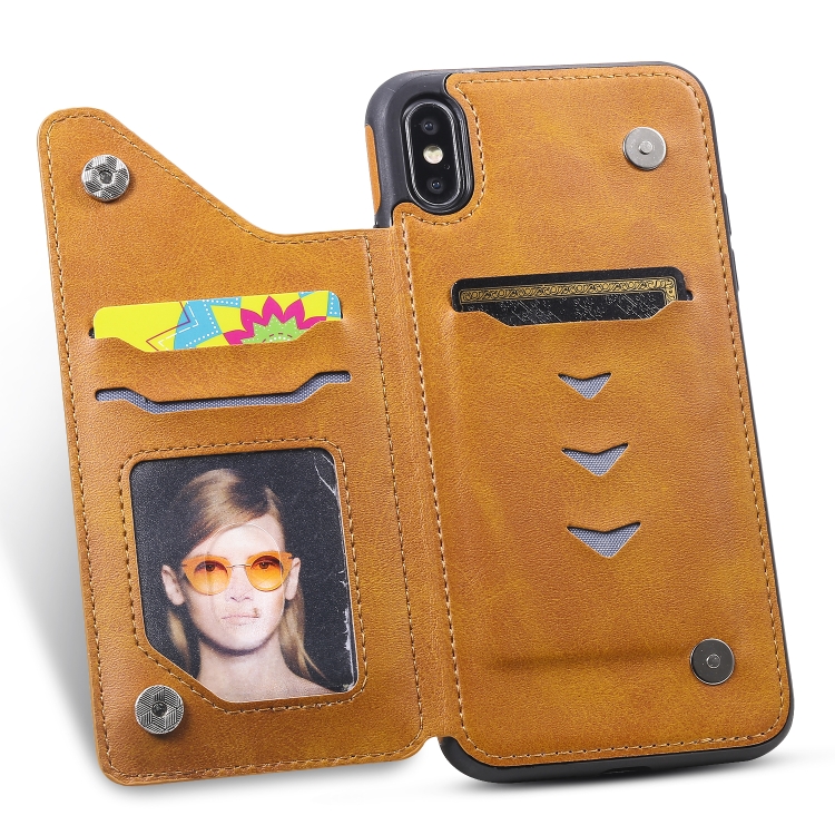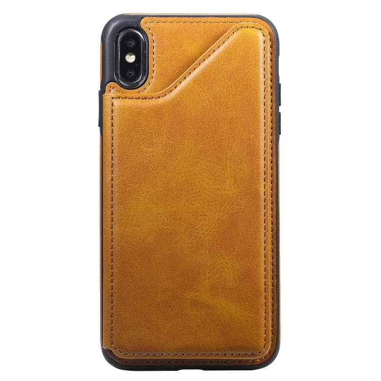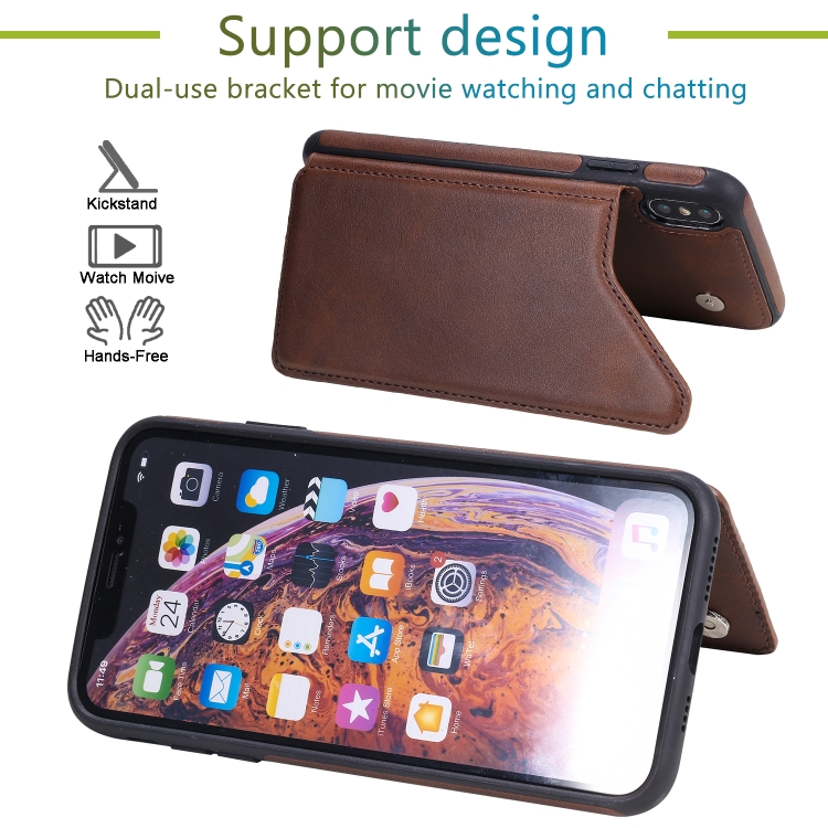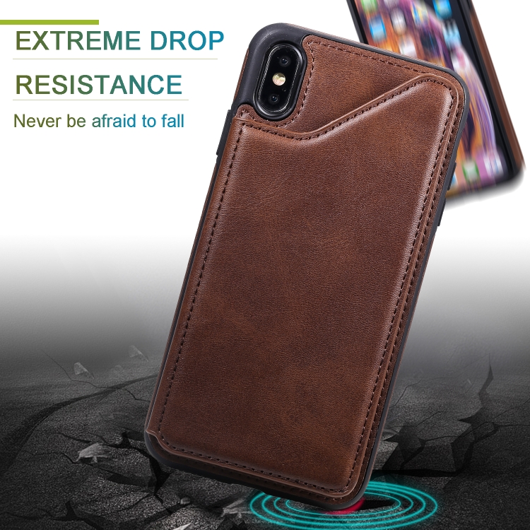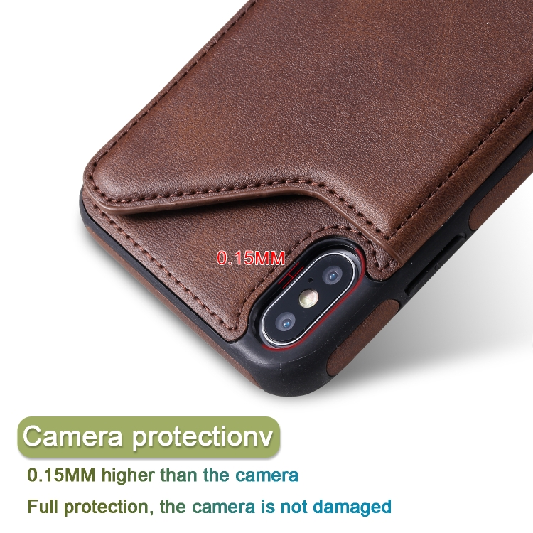 Estuche Protector para iPhone Xs Max Textura de Pantorrilla a Prueba de Golpes con Soporte y Ranuras para Tarjetas (Marrón)
