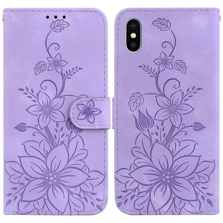Funda para iPhone Xs Max Cuero con Relieve Lily (Púrpura)