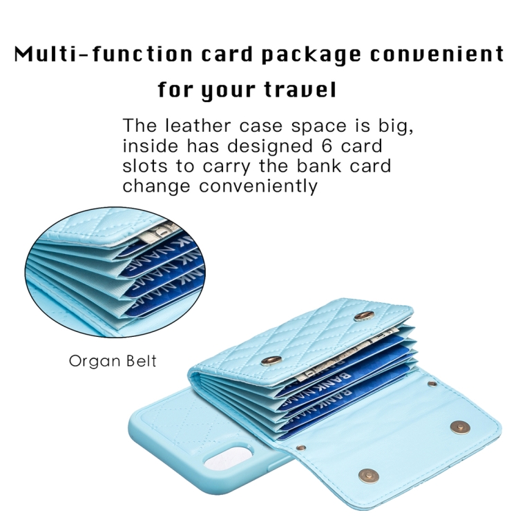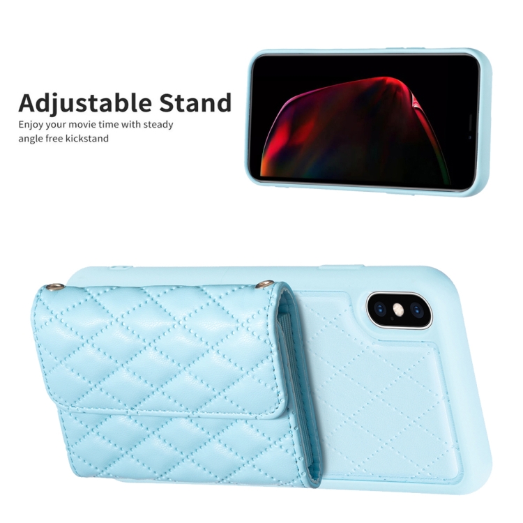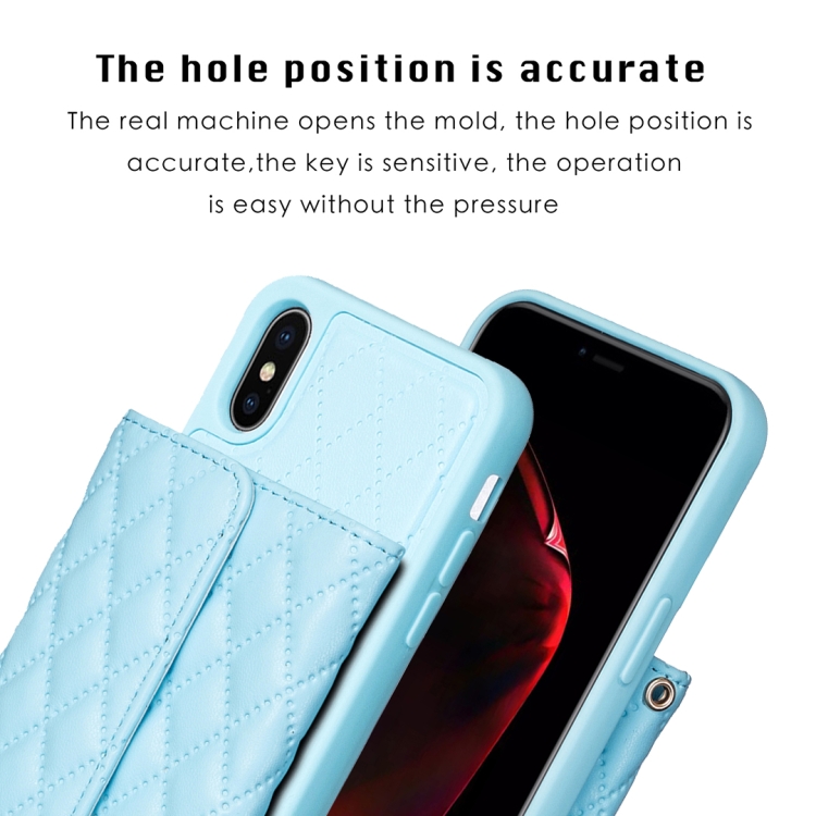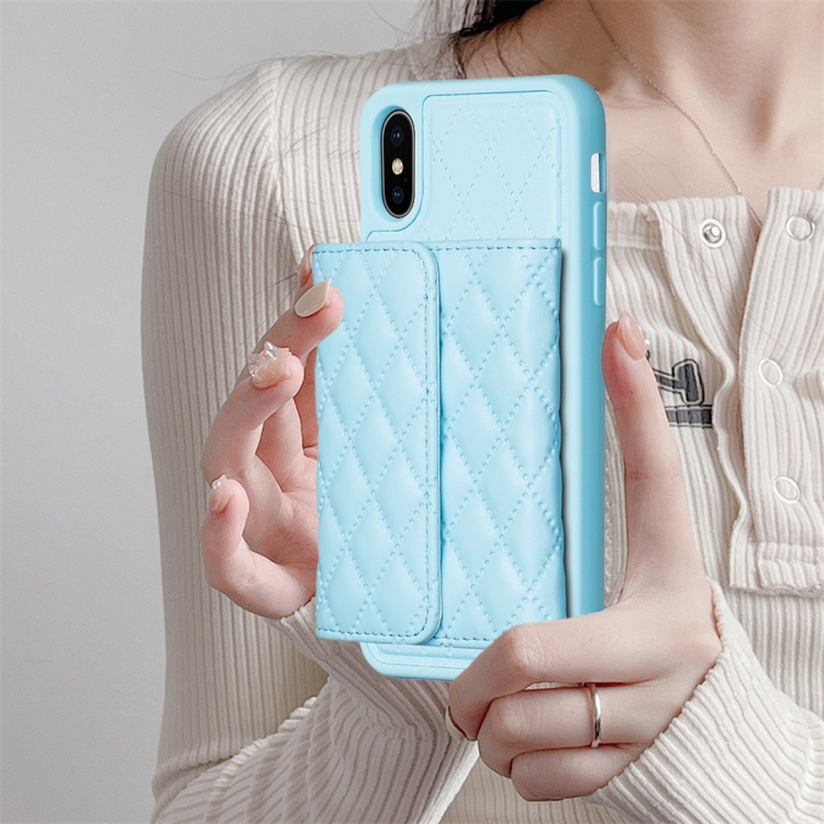 Funda de Teléfono iPhone Xs Max Cuero Rómbico con Billetera Horizontal (Azul)