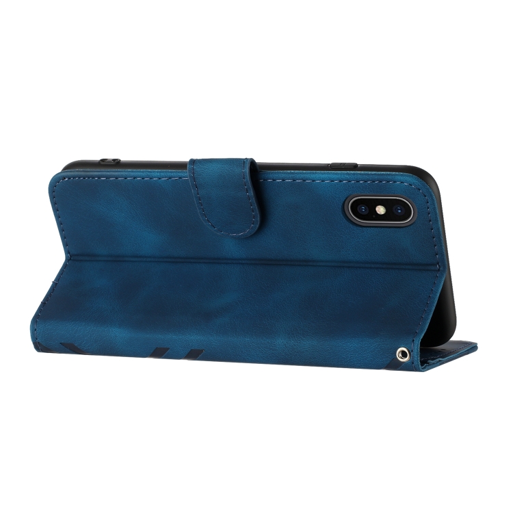 Funda para iPhone Xs Max Line Pattern Skin Feel de Cuero para Teléfono (Azul Real)