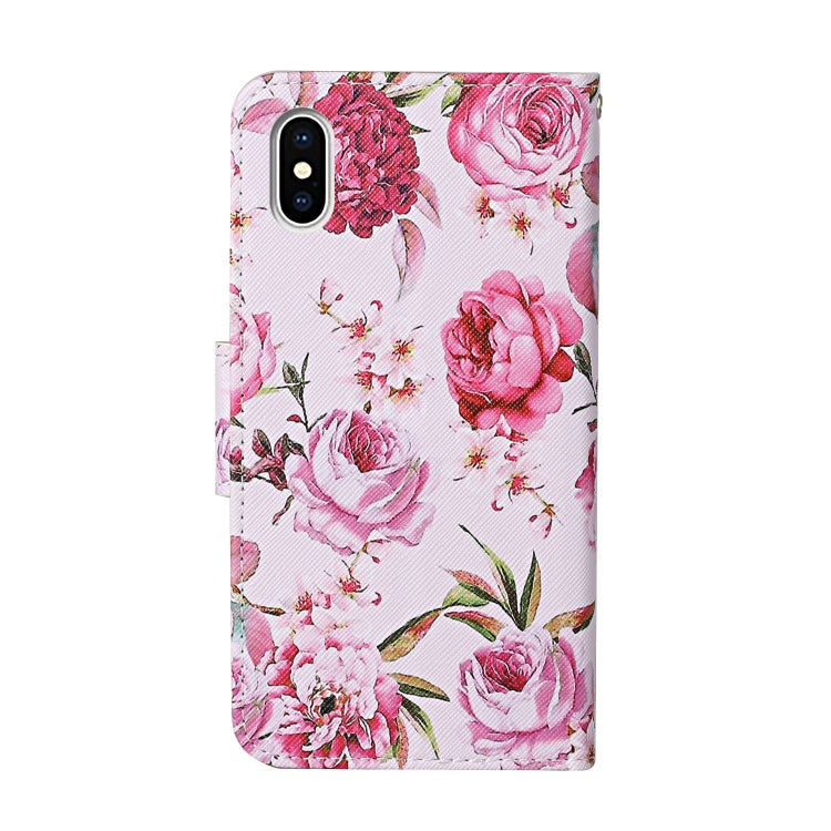 Estuche de Cuero para iPhone Xs Max Patrón Dibujo con Tapa Horizontal Soporte Ranuras Tarjetas Billetera (Peonía)
