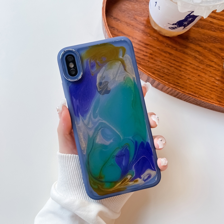 Funda para iPhone Xs Max Pintura al Óleo Galvanoplastia TPU (Azul)