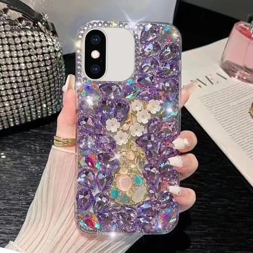 Caja para iPhone Xs Max PC Plum Blossom con Incrustaciones de Diamantes Hecha a Mano (Púrpura)