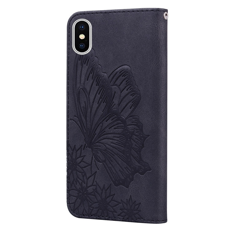 For iPhone XS Max Retro Skin Feel Butterflies Embossing Horizontal Flip Leather Case with Holder & Card Slots & Wallet(Black)