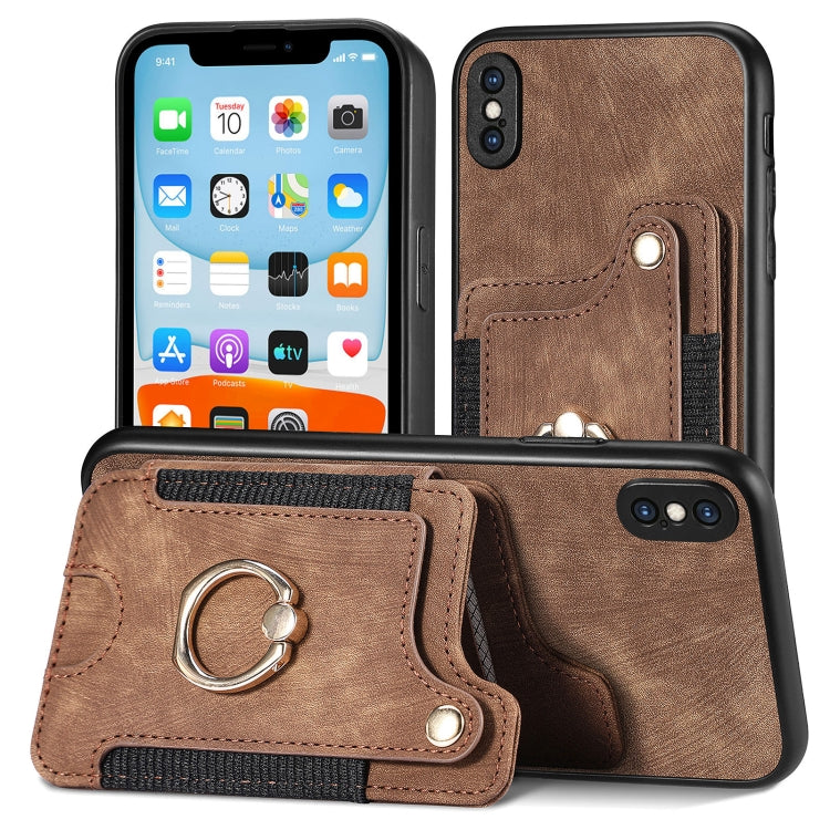Funda para iPhone Xs Max Retro Skin-Feel Ring Multi-Card Wallet (Marrón)