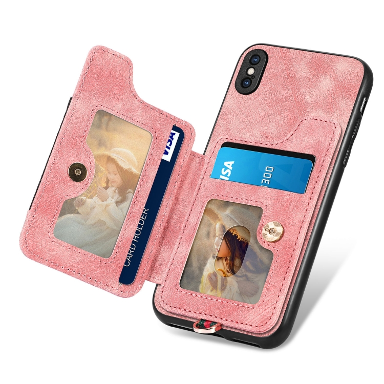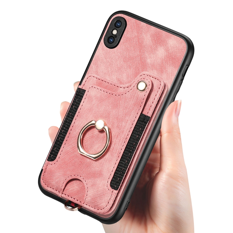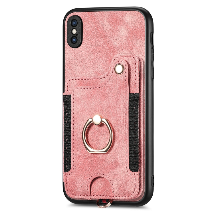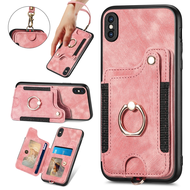 Funda para iPhone Xs Max Retro Skin-Feel Ring Multi-Card Wallet (Rosa)