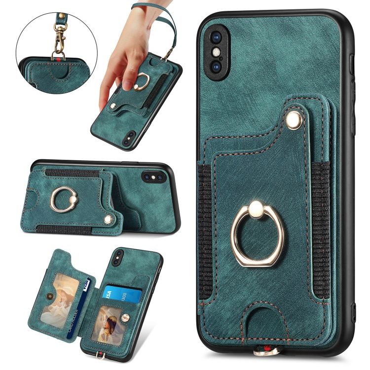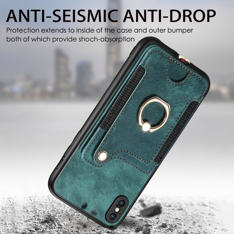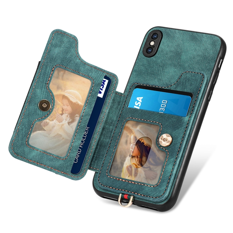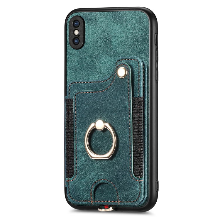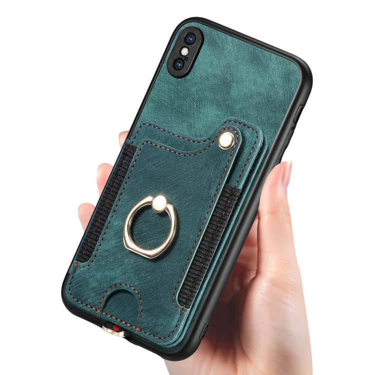 Funda para iPhone Xs Max Retro Skin-Feel Ring Multi-Card Wallet (Verde)
