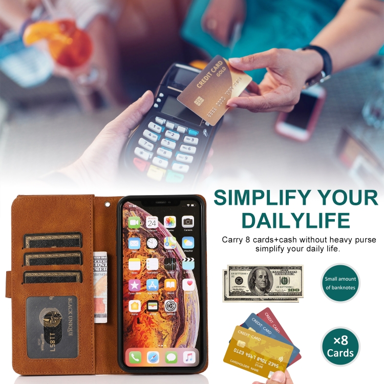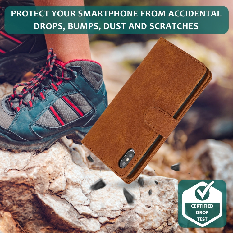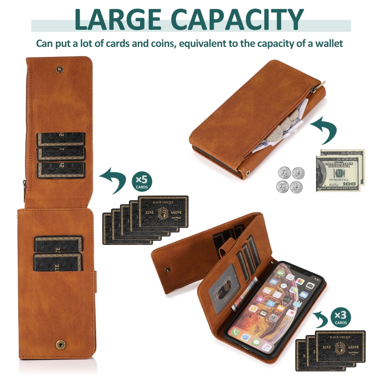Funda para iPhone Xs Max Skin-Feel Crazy Horse Textura Zipper Wallet Bag Cuero con Tapa Horizontal Soporte Ranuras Tarjetas Billetera Cordón (Marrón)