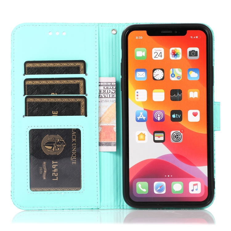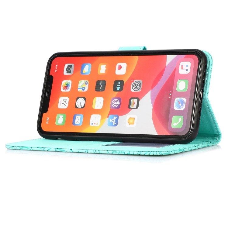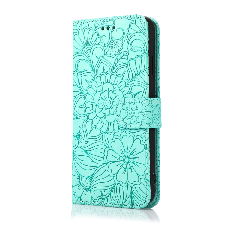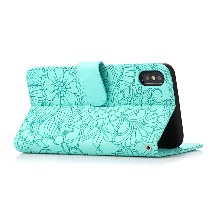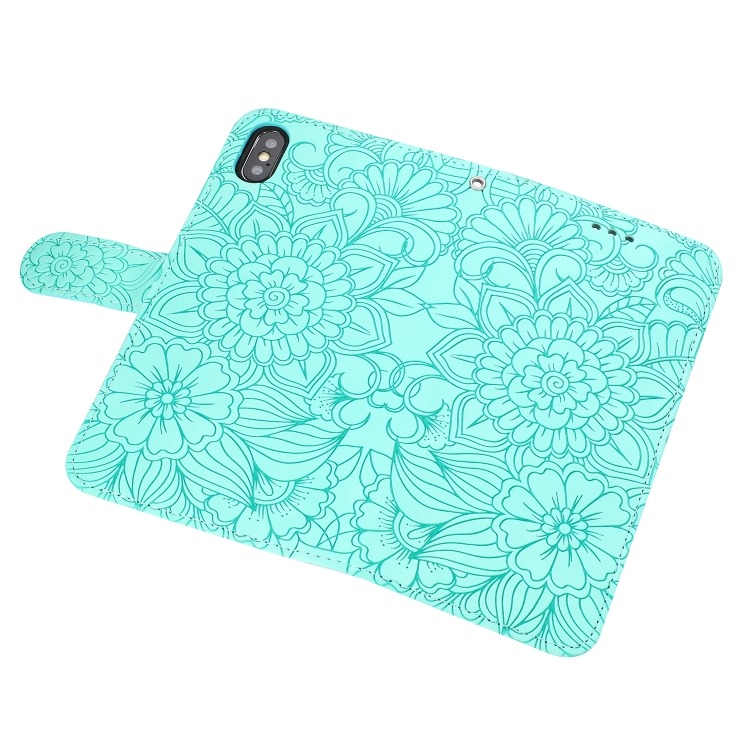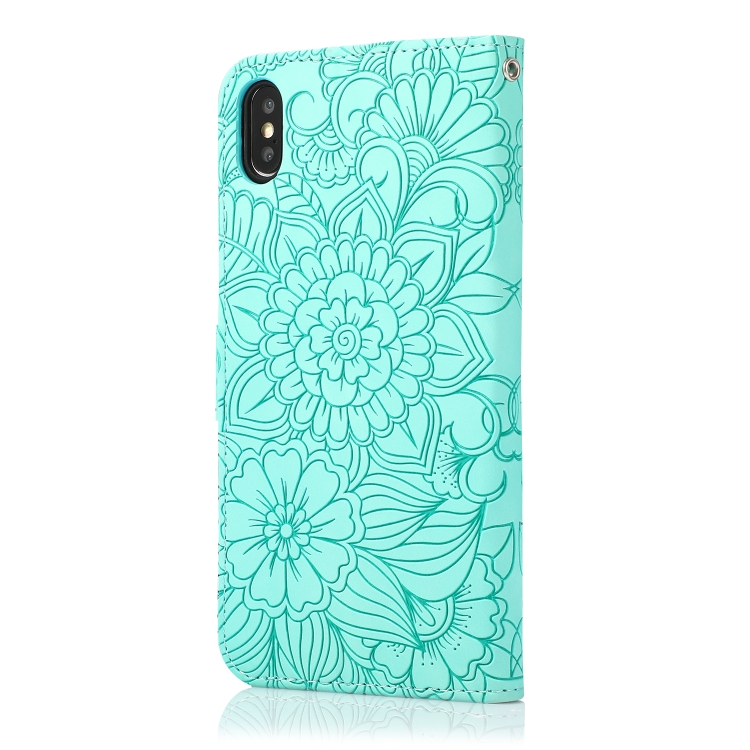 Estuche para iPhone Xs Max Skin Feel Cuero con Tapa Horizontal Girasol En Relieve Soporte Ranuras Tarjetas Billetera Cordón (Verde)
