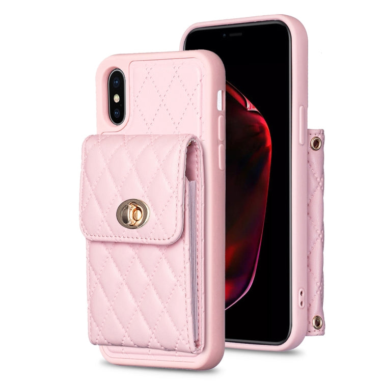 Funda de Cuero para iPhone Xs Max Rombico Vertical con Hebilla de Metal (Rosa)