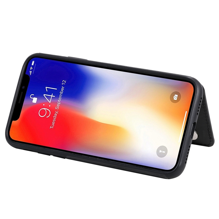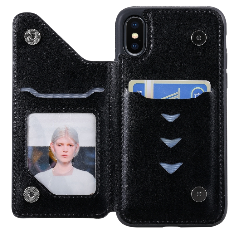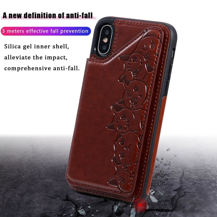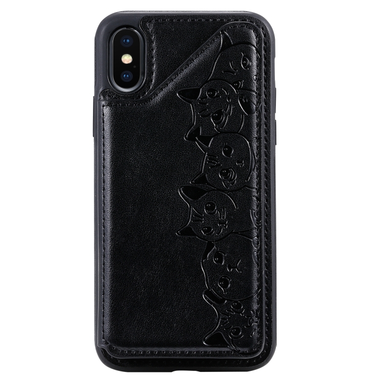 Estuche Protector para iPhone Xs Six Cats con Patrón En Relieve, Soporte, Ranuras para Tarjetas y Marco de Fotos (Negro)