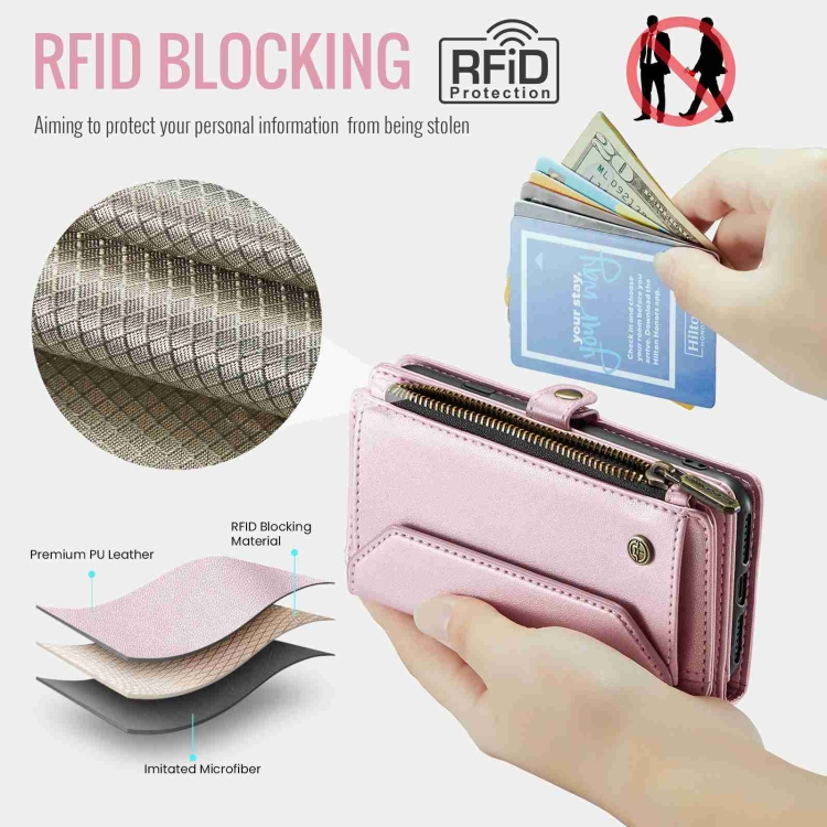 Funda para iPhone Xs / X Caseme C36 Cartera con Ranuras para Tarjetas Cremallera Antirrobo Rfid (Rosa)