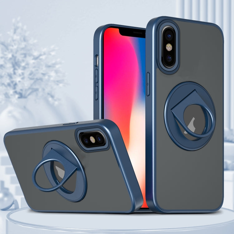 Estuche Magnético para Teléfono iPhone Xs / X con Anillo Giratorio (Azul)