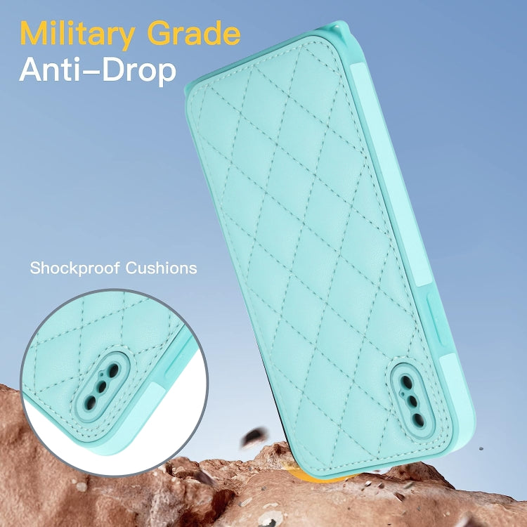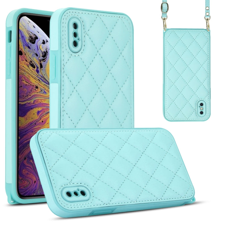 Estuche para Teléfono iPhone Xs / X Textura Rómbica Cordón Doble (Verde)