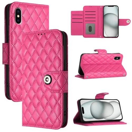 Funda para Teléfono iPhone Xs X con Tapa de Cuero Textura Rómbica y Cordón (Rojo Rosa)