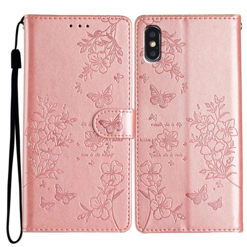 Funda para Teléfono iPhone Xs X Cuero Relieve Flor Amor Mariposa (Oro Rosa)